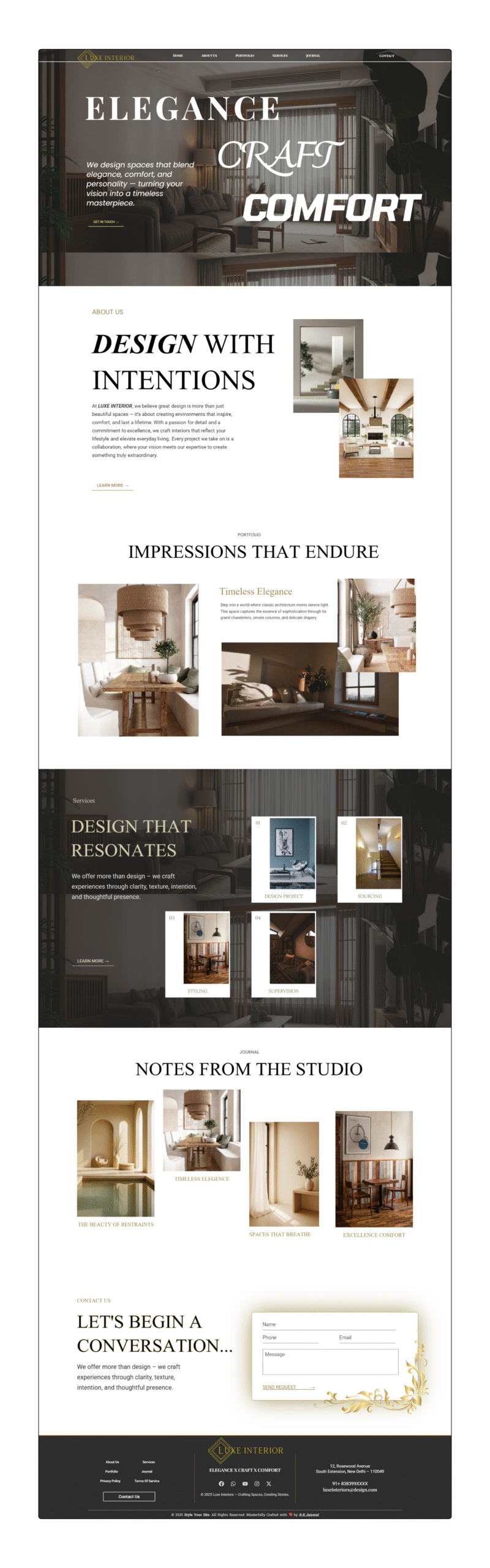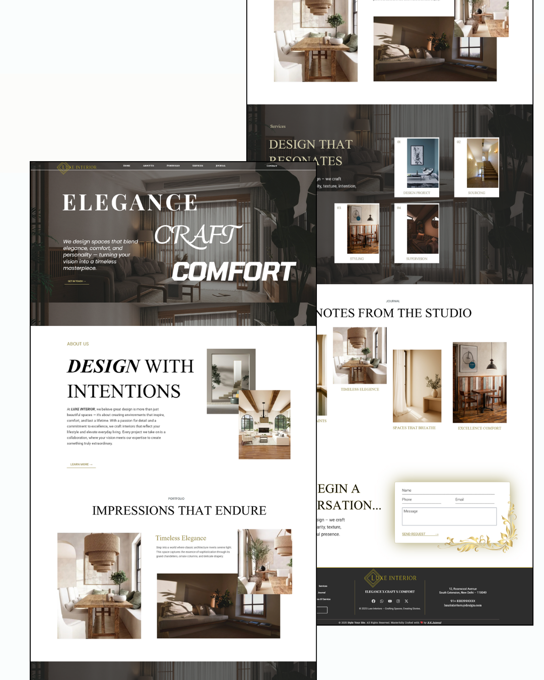 Explore My Projects From the first sketch to the final click, I craft websites that blend beautiful design with powerful performance. Contact Us ➜ Fitness WebsiteEducational WebsitePhotography Website View More Projects #1. A Modern & Elegant Interior Design Website :- #1. A Modern & Elegant Interior Design Website :- #2. Capturing Moments Online – Photography Website :- #2. Capturing Moments Online – Photography Website :-